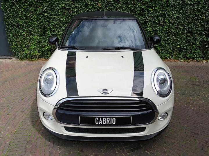 Zeer nette, goed onderhouden Mini Cabrio Cooper F57 in de kleur Pepper White met een zwarte stoffen kap, zwarte 17" Cosmos Spoke lichtmetalen velgen en een half leder Carbon Black sportinterieur met een Carbon Black colourline en Piano Black interieurdelen! Deze Cooper Cabrio heeft slechts 1 eigenaar gehad die er slechts 59.399km mee heeft gereden. De Cabrio is o.a. uitgerust met een origineel windscherm, Park Distance Control (PDC) achter, LED kop- en mistlampen, climate control, lederen multifunctioneel sportstuur met cruise control, stoelverwarming, lichtpakket en opbergpakket.