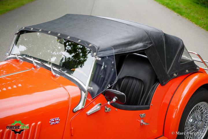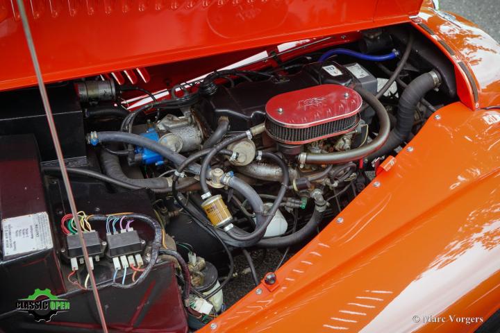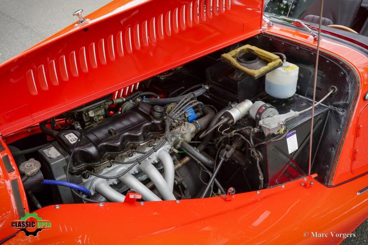 Dit is een prachtige tweezits Morgan, aangedreven door een sterke en betrouwbare 1.6-liter Ford-motor. De viercilindermotor levert een indrukwekkende 97 pk, meer dan genoeg om pittige prestaties te leveren in deze lichtgewicht sportwagen!