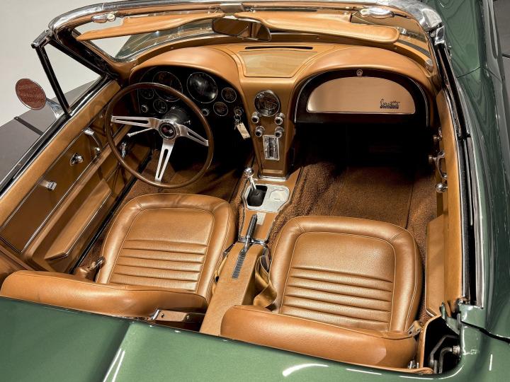 This particular Goodwood Green convertible carries that history with pride. With its original colors, its matching-numbers powertrain, and its well-preserved character, it stands as a reminder of what made the C2 legendary: timeless design, authentic mechanical soul, and the unmistakable feeling of freedom that only a classic Corvette can give.