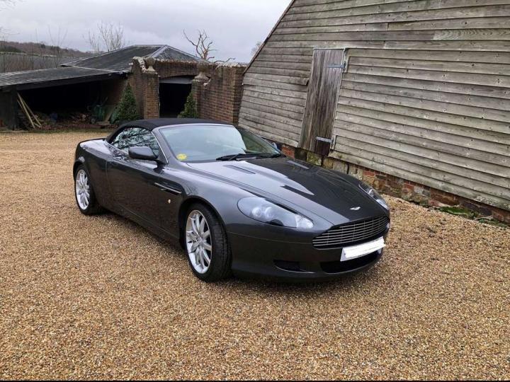 2005 Aston Martin DB9 Volante finished in Meteorite Silver with Iron Ore hide interior and Mahogany veneered door cappings and centre console. This beautifully kept, one owner example has been sparingly used over the 20 years having covered only 36,000 miles and has always been garaged from new. It has a meticulously recorded service history with 18 services stamps, 9 of which are from Aston Martin main agents and a further 9 services with well-respected Aston Martin Specialists. In the past 2 years alone, it has had the benefit of a brake overhaul, new fuel pumps and a new battery. The standard DB9 specification includes Climate Control, Satellite Navigation, electrically adjustable heated seats with lumbar support and anti-skid control. This car was also ordered with Touchtronic transmission, a Dolby 950-watt Linn Hifi system, cruise control, leather clad steering wheel, heated front screen, bright finish front Grille and 19" alloys with light grey brake calipers. On viewing this car, it immediately becomes apparent from its condition and its exemplary service history that it has been very well cared for in the correct manner. Sensibly priced for one in this condition at £31,950